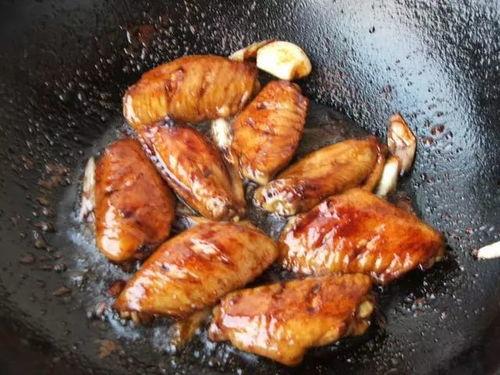 5. 将煎好的鸡翅放入锅中,中小火慢炖,直到汤汁浓稠。